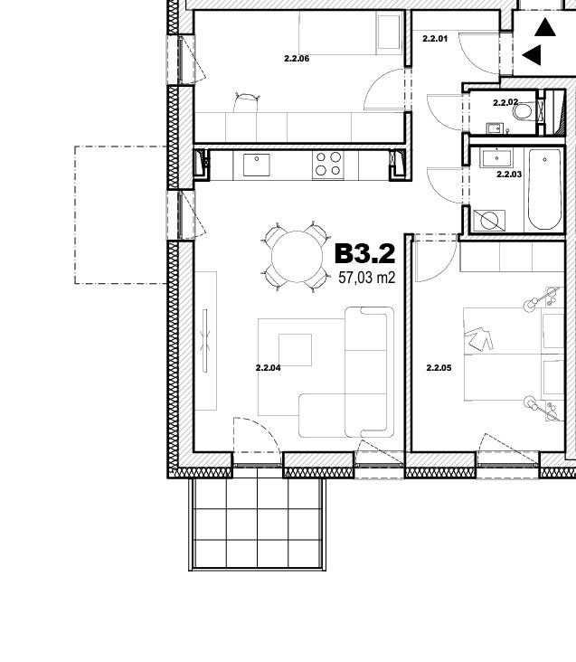 • Vodovodný rozvod studenej a teplej vody privedený do bytu po uzatváracie ventily v kúpeľni, WC a kuchyni